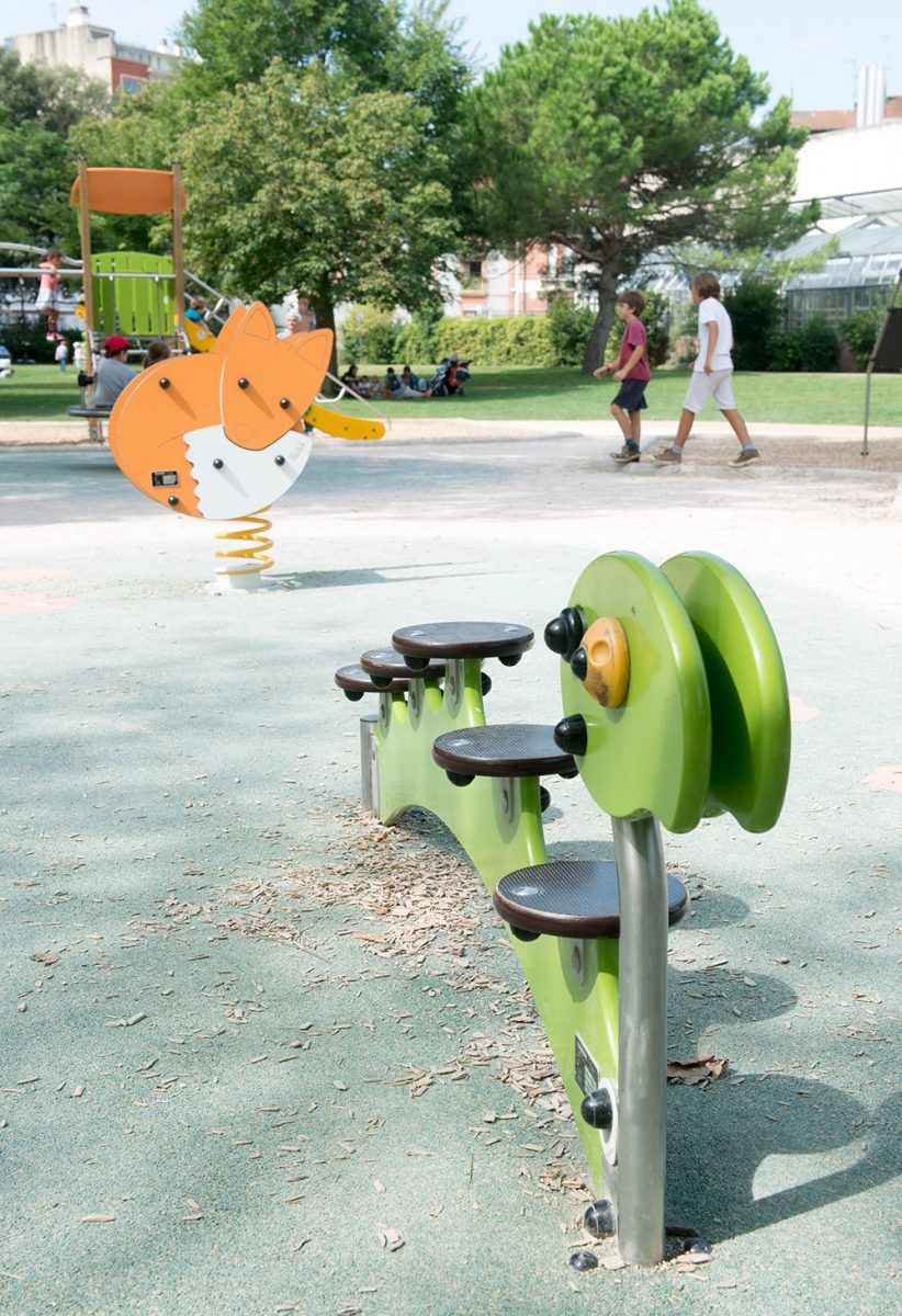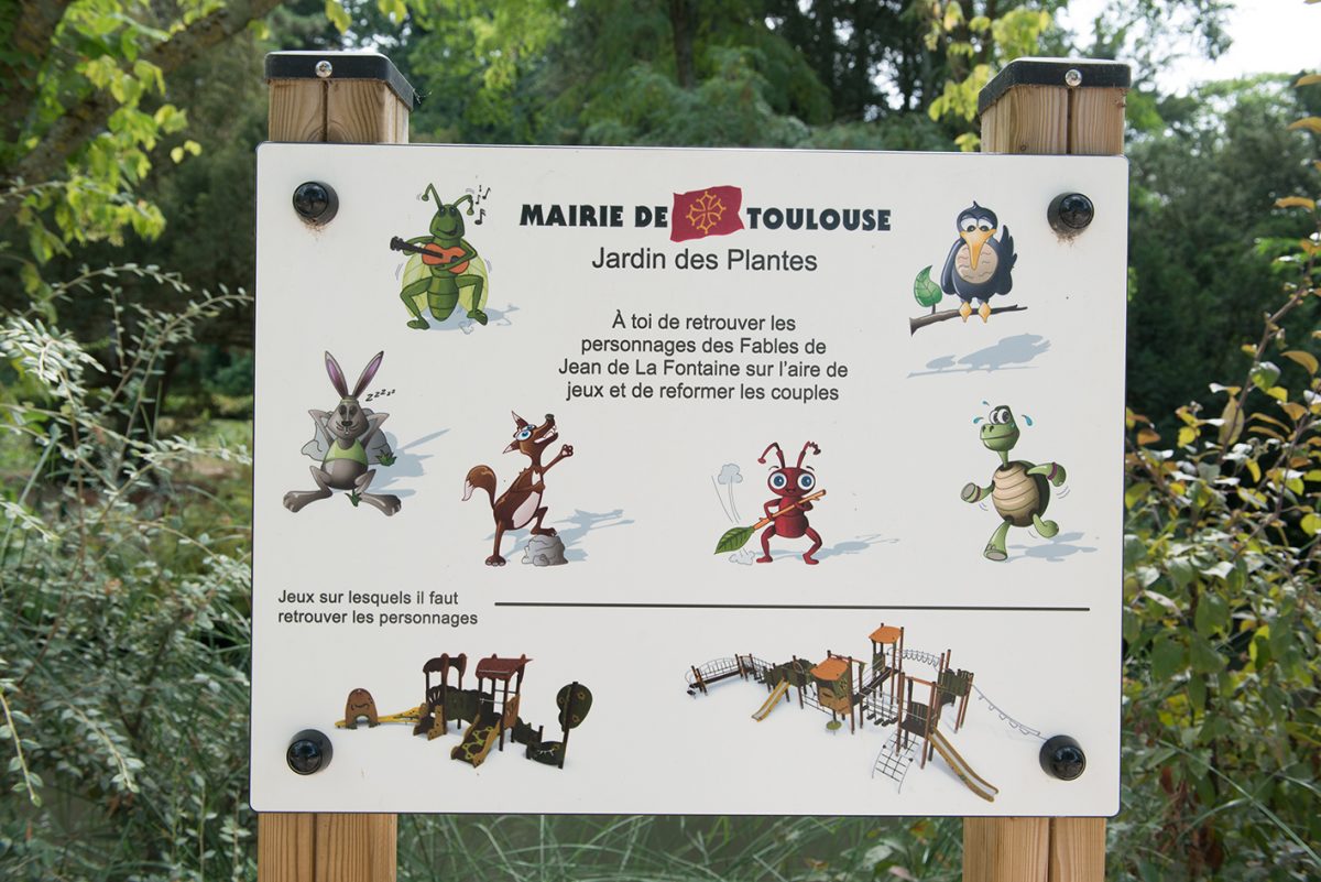 Der Spielplatz ist vom Fabeldichter Jean de la Fontaine, der die Natur liebte, sowie von bestimmten Figuren seiner berühmtesten Werke geprägt. Rabe, Fuchs, Zikade und Ameise spielen mitten zwischen den Spielgeräten Verstecken, sodass die Kinder beim Spielen lernen können!