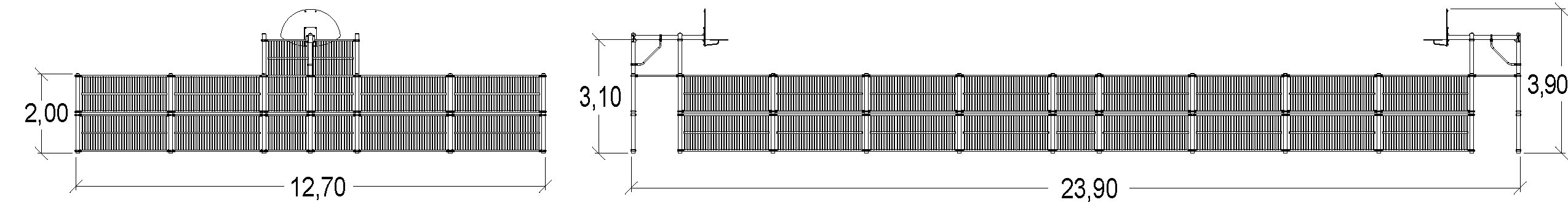Das Modul hat folgende Abmessungen: 23,90 m Länge, 12,70 m Breite, 3,90 m Höhe.