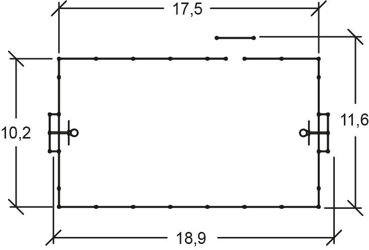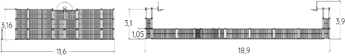 Das Modul hat folgende Abmessungen: 18,90 m Länge, 11,60 m Breite, 3,90 m Höhe.