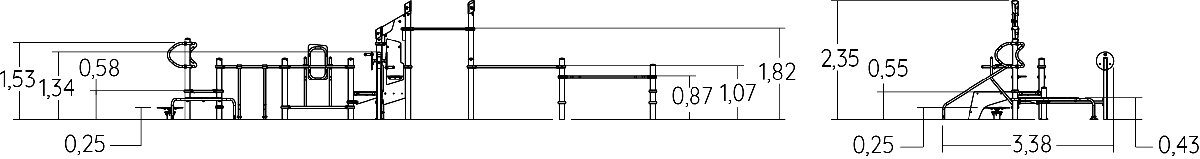 Eine generationsübergreifende Station für alle Nutzer. Die vielfältigen Geräte bieten allen Nutzer einen Raum für die sportliche Betätigung. Der Armtrainer und das Balancierboard eignen sich besonders für ältere Erwachsene, während die Dip-Bars und Klimmzuggeräte eher sportliche Nutzer ansprechen.