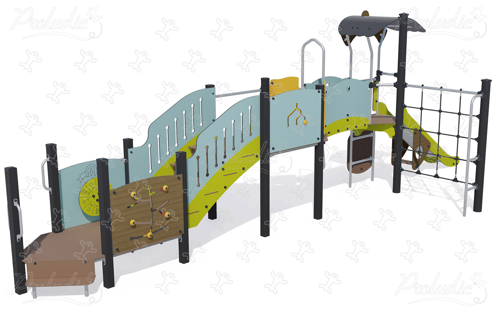 Multispielgerät mit Rutschen und Kletteraktivitäten in Pastell- und Holzfarben, 25 Benutzer - J38118-C