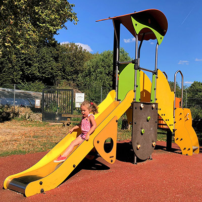 Multispielgerät für Kinder mit Rutsche, Kletterelementen und erhöhtem Spielhaus - J3835