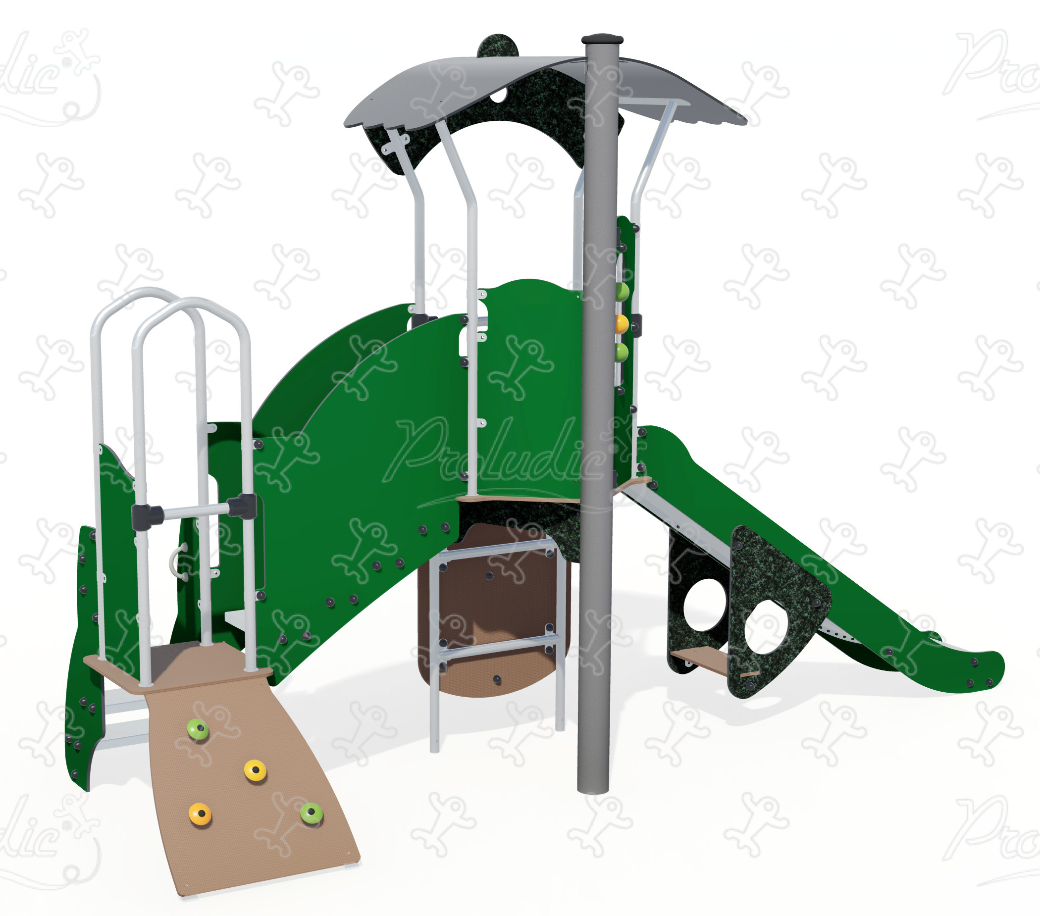 Multispielgerät für Kinder mit Rutsche, erhöhtem Spielhaus und Kletterelementen - J3861-HDPE®