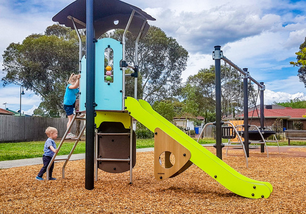 Multispielgerät mit Rutsche und Kletterelementen in Pastell- und Holzfarben, 10 Benutzer - J3865-C