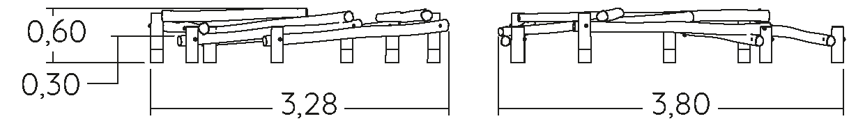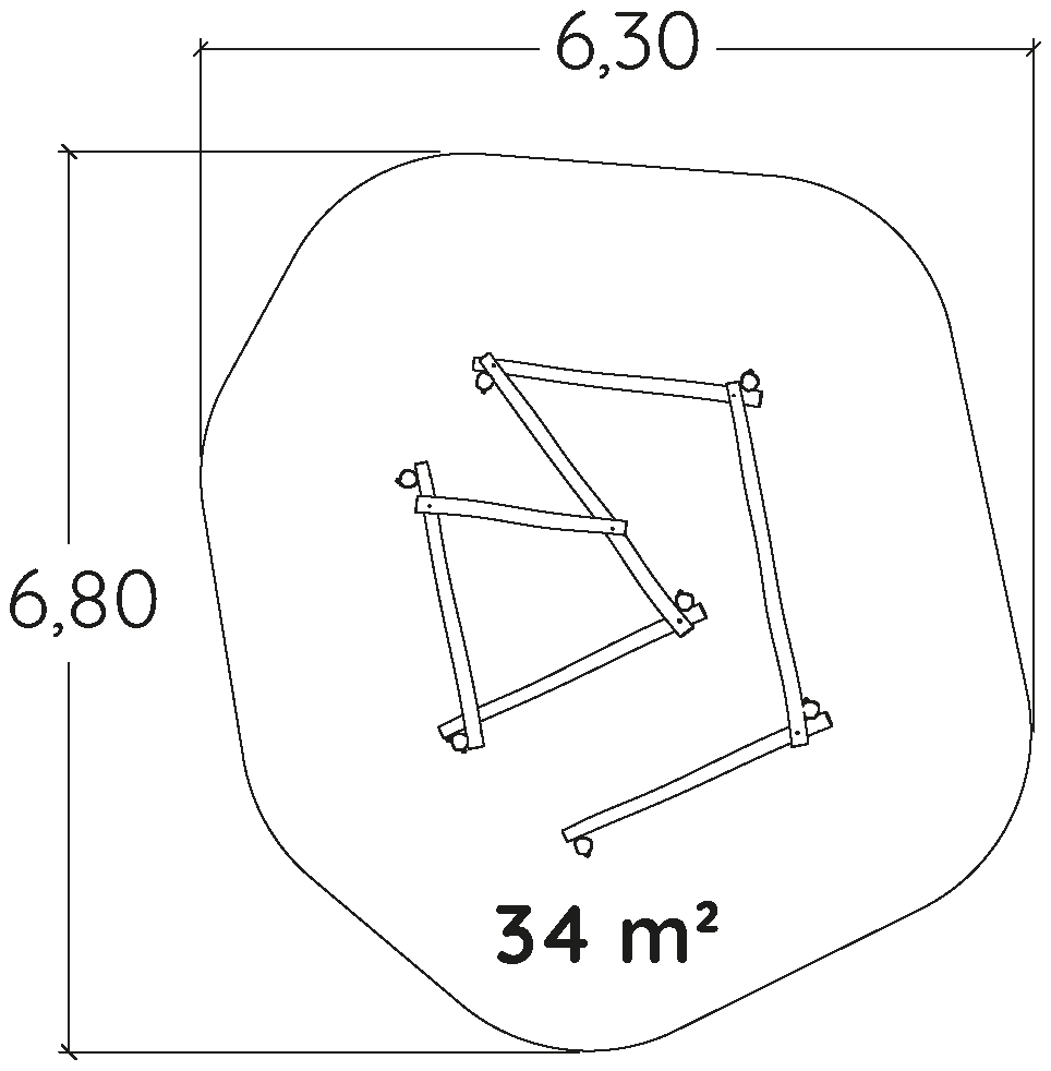 Das Modul hat folgende Abmessungen: 3,81 m Länge, 3,31 m Breite, 0,60 m Höhe. Die Fallhöhe beträgt 0,60 m.