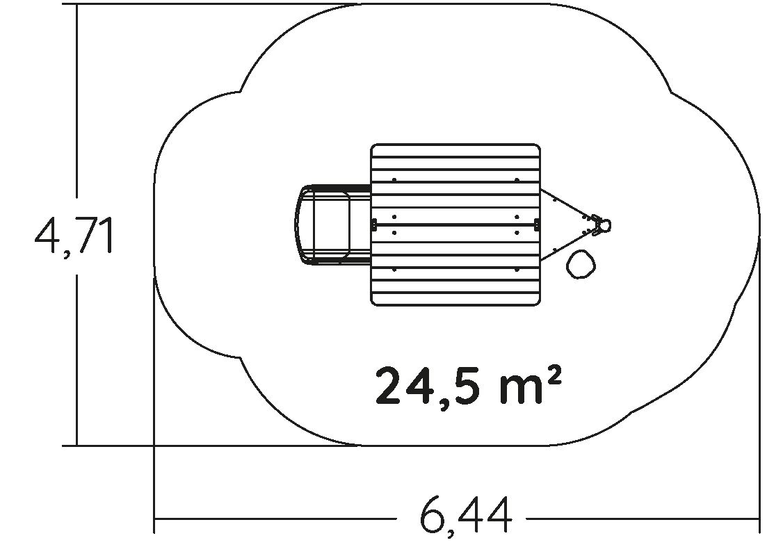 Das Modul hat folgende Abmessungen: 3,39 m Länge, 1,71 m Breite, 2,40 m Höhe. Die Fallhöhe beträgt 1,00 m.
