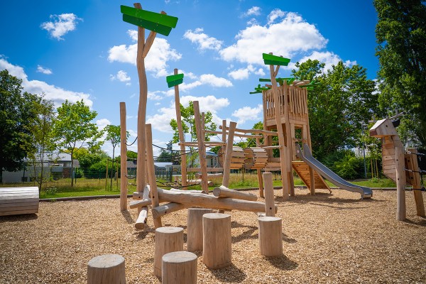 Nestturm – Holz-Spielanlage mit Balancierpfad, Turm und Rutsche - J49402®