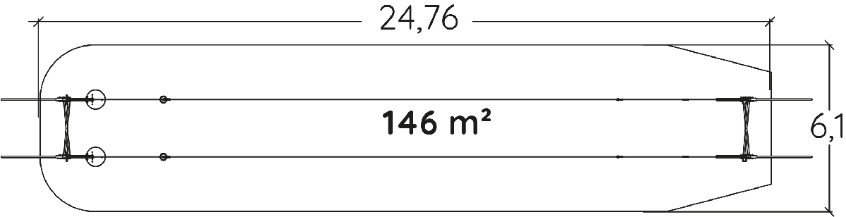 Das Modul hat folgende Abmessungen: 29,72 m Länge, 2,80 m Breite, 3,43 m Höhe. Die Fallhöhe beträgt 1,00 m.