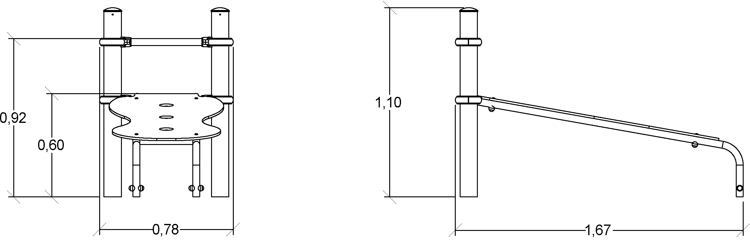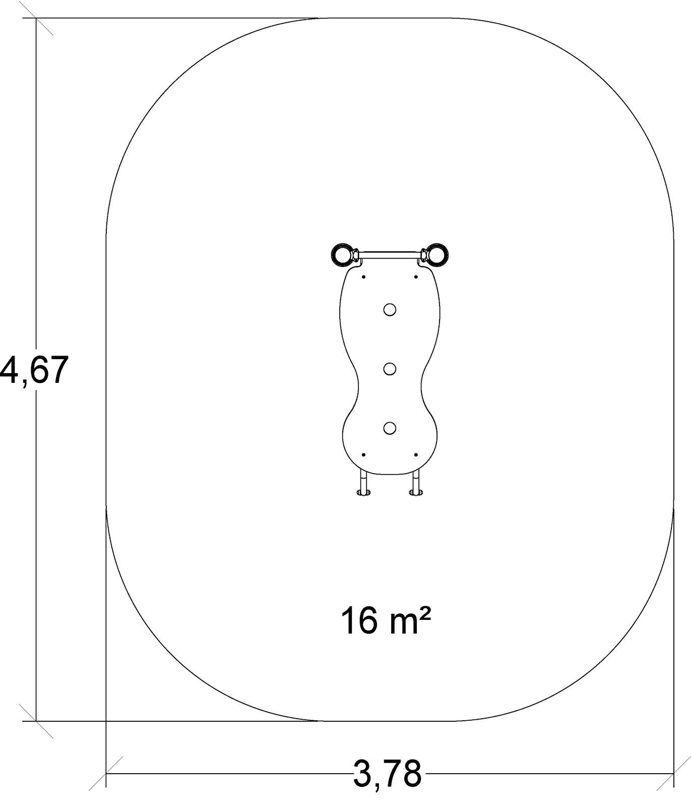 Das Modul hat folgende Abmessungen: 1,65 m Länge, 0,78 m Breite, 1,10 m Höhe. Die Fallhöhe beträgt 0,95 m.