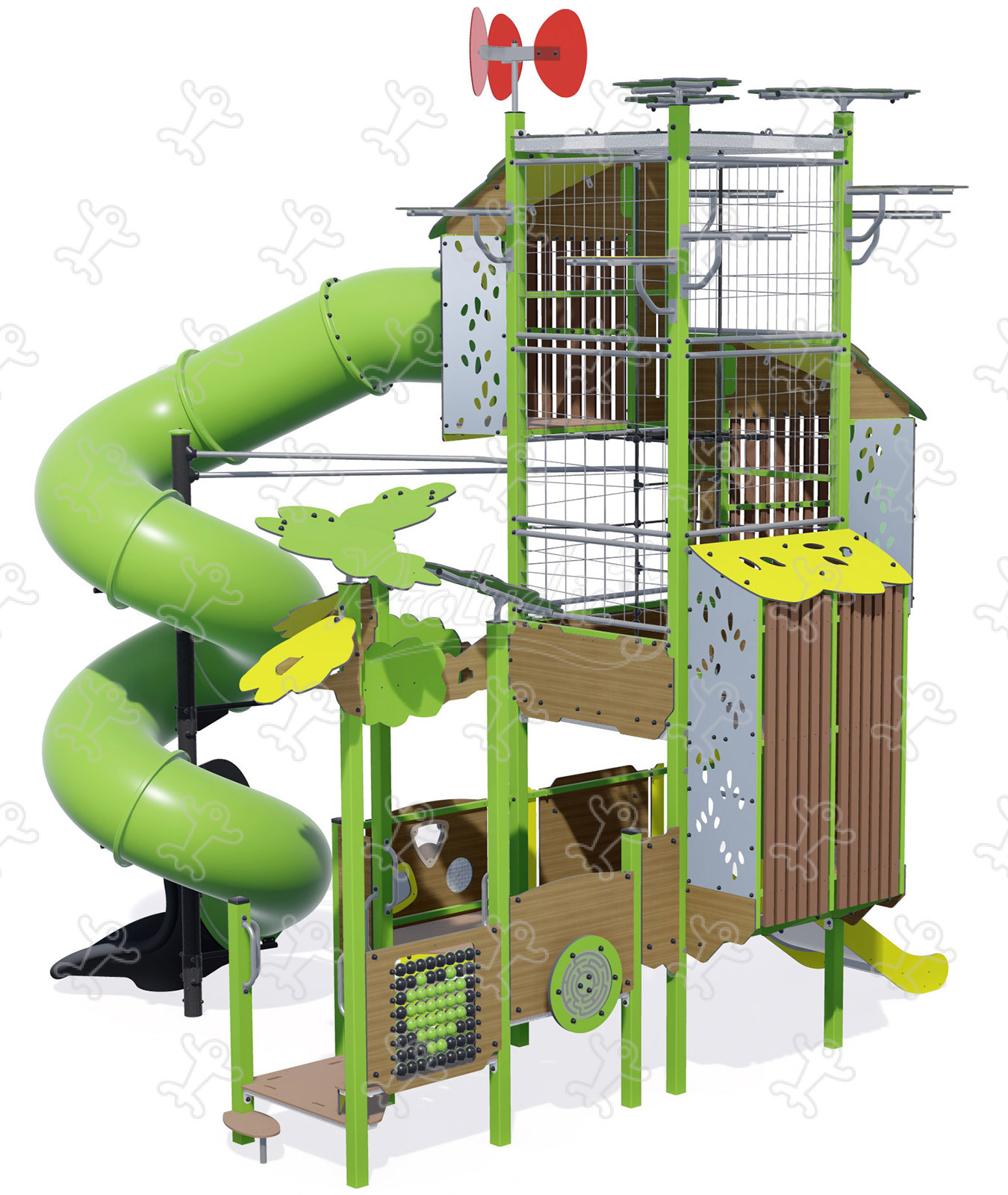 Großer inklusiver Spielturm mit Rutschen, Kletterelementen und beweglichen Spielelementen - J56010®