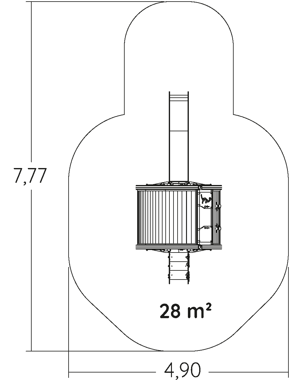 Das Modul hat folgende Abmessungen: 4,27 m Länge, 1,92 m Breite, 3,36 m Höhe. Die Fallhöhe beträgt 1,17 m.