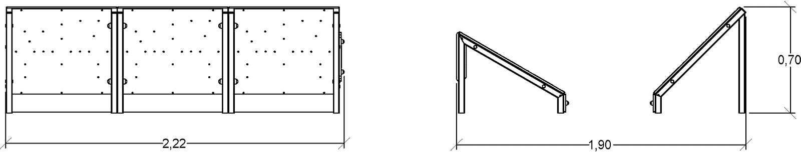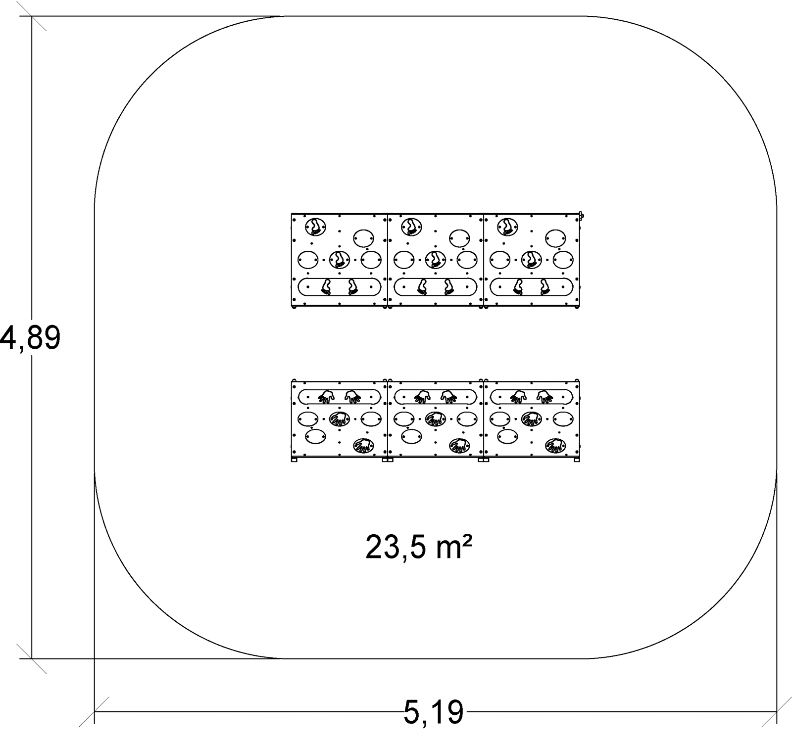 Das Modul hat folgende Abmessungen: 2,19 m Länge, 1,89 m Breite, 0,70 m Höhe. Die Fallhöhe beträgt 0,70 m.