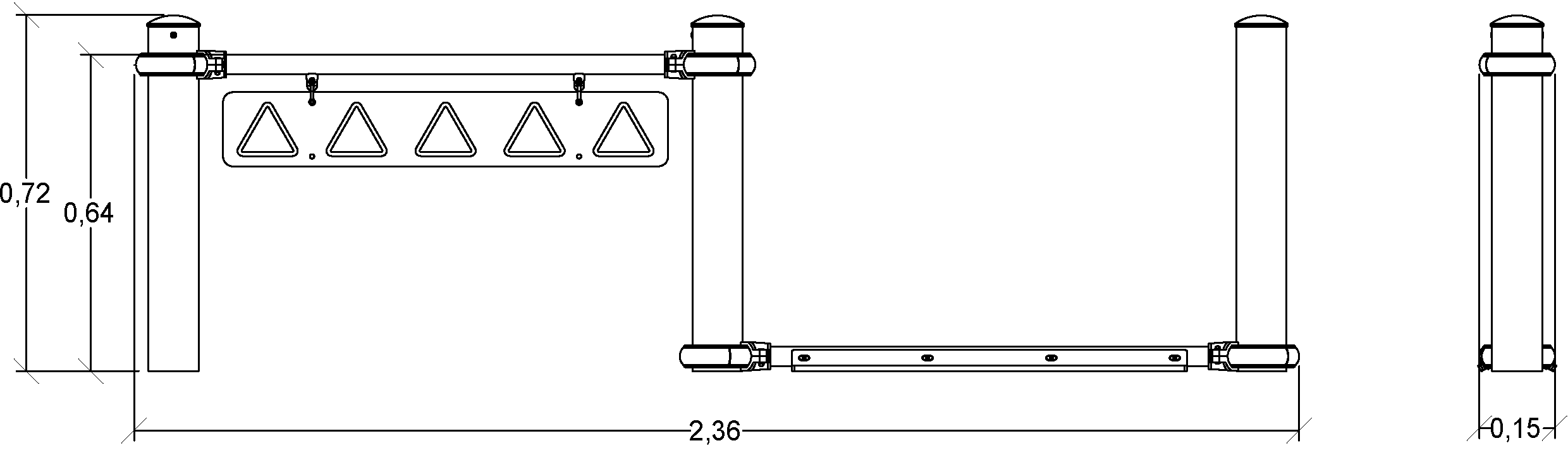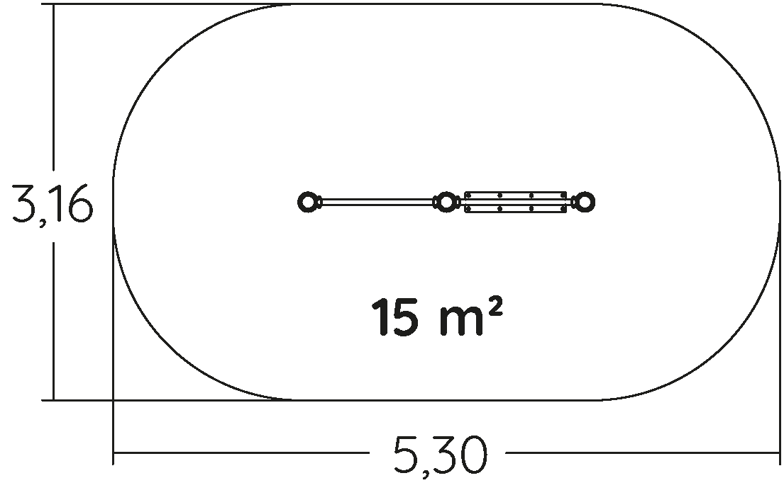 Das Modul hat folgende Abmessungen: 2,35 m Länge, 0,15 m Breite, 0,72 m Höhe. Die Fallhöhe beträgt 0,60 m.