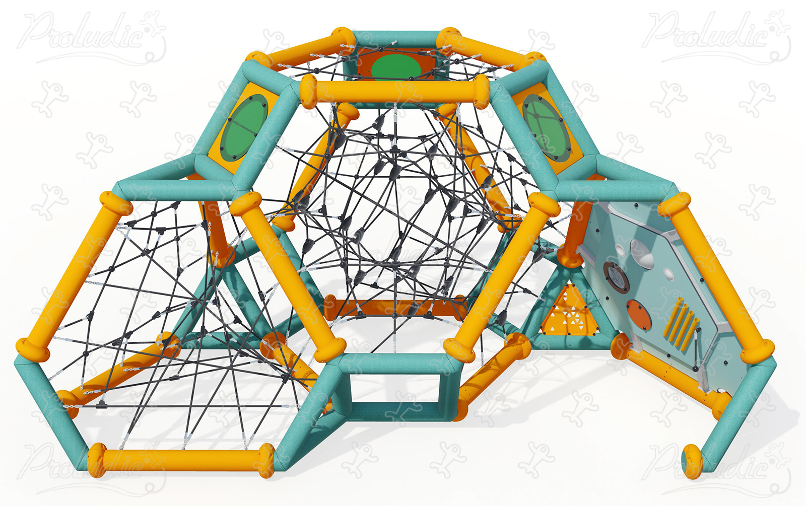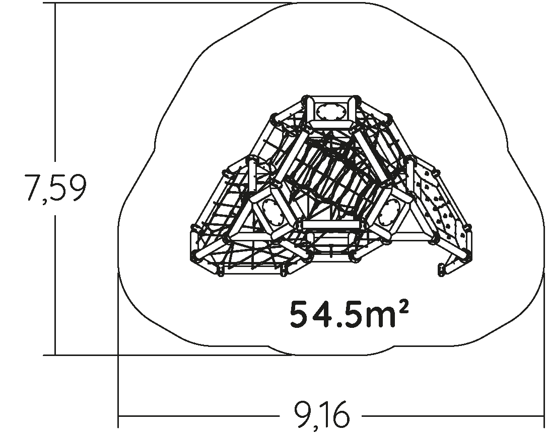 Das Gerät J6102® gehört zu der Produktreihe "Kletterspielgeräte". Der Zugang ist ab 6 Jahren möglich. Es bietet Platz für bis zu 50 Nutzer.