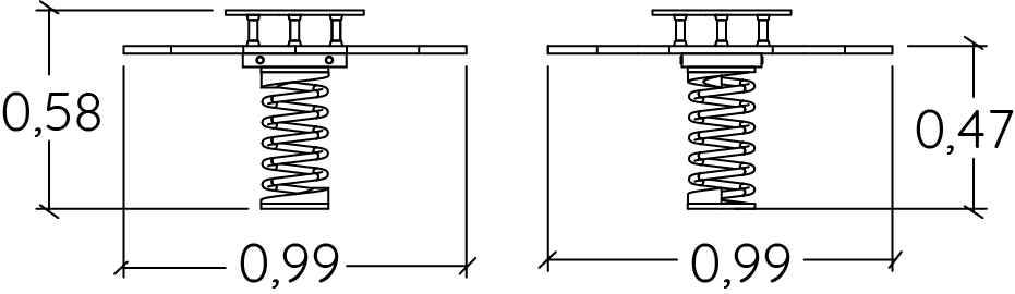 Das Modul hat folgende Abmessungen: 0,99 m Länge, 0,99 m Breite, 0,57 m Höhe. Die Fallhöhe beträgt 0,60 m.
