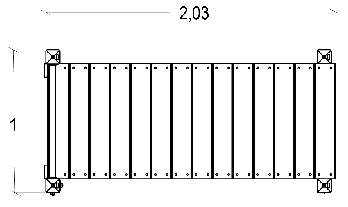 Das Modul hat folgende Abmessungen: 2,30 m Länge, 1,00 m Breite, 1,51 m Höhe. Die Fallhöhe beträgt 0,60 m.