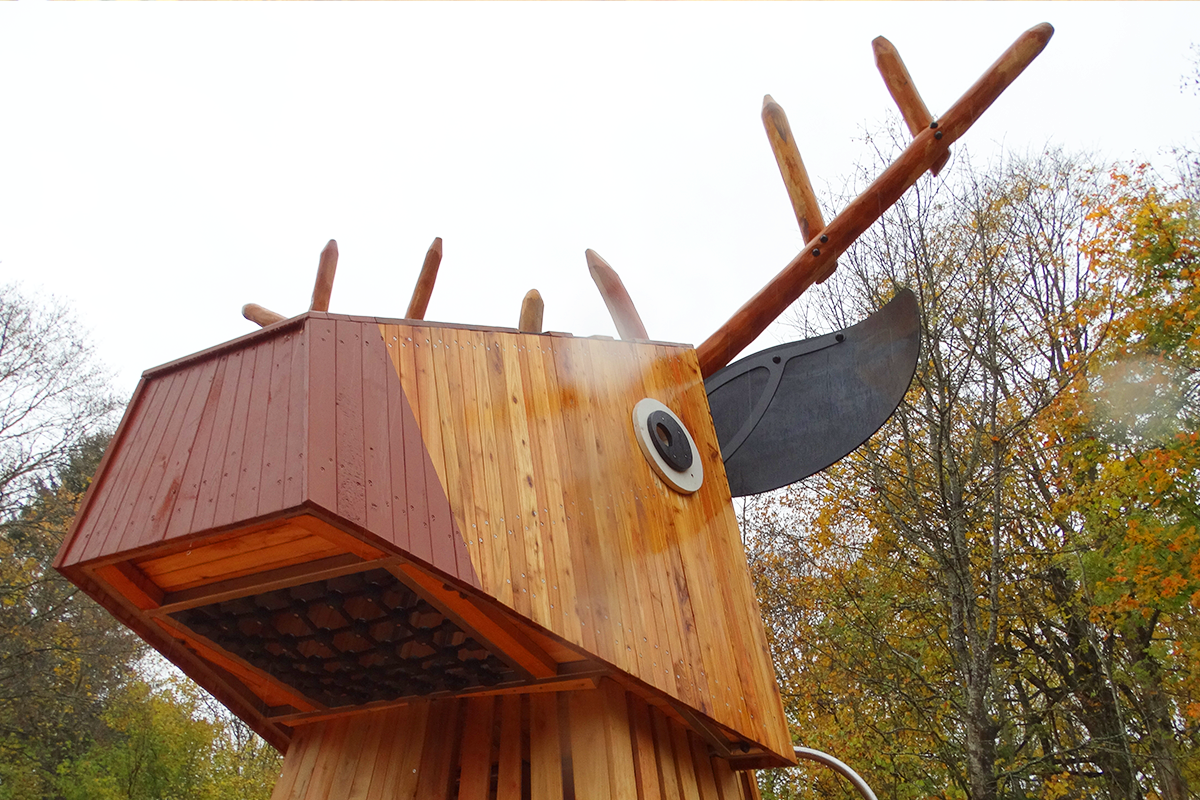 Mit dem neuen Spielplatz mit Hirsch-Spielgerät in Häusern wurde ein einzigartiges Spielangebot geschaffen: Ein über vier Meter hoher Hirsch aus Robinienholz kombiniert auffällige Gestaltung mit vielseitiger Funktion. Das Origin-Spielgerät „Hirsch“ von Proludic ist ein echtes Wahrzeichen und bietet zahlreiche Bewegungs- und Interaktionsmöglichkeiten – von Rutschen und Klettern bis zu Rückzugsorten und Rollenspielen.