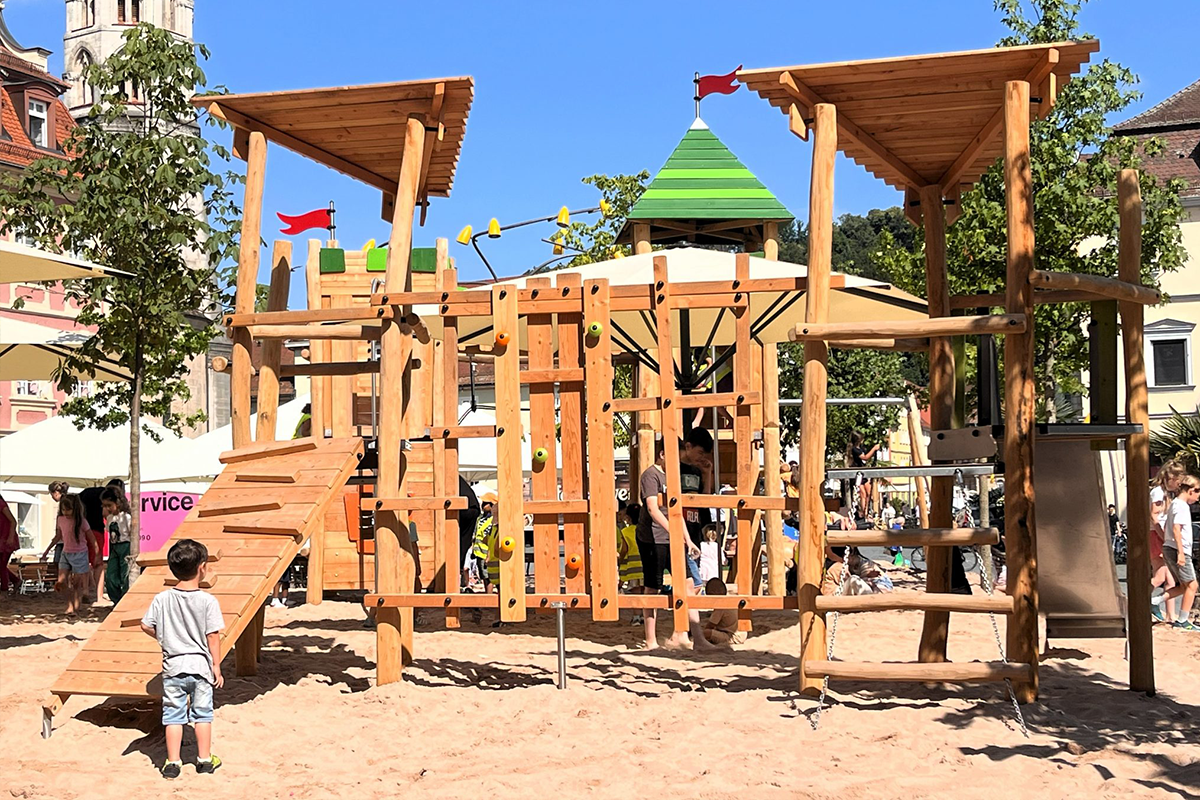 Was als temporäres Highlight im Sommer 2024 begann, hat nun ein dauerhaftes Zuhause: Der ursprünglich als Pop-up-Spielplatz konzipierte „Stauferburg“-Spielplatz stand mehrere Wochen prominent auf dem Oberen Marktplatz in Schwäbisch Gmünd und bot dort Kindern inmitten der Innenstadt einen fantasievollen Spielraum. Nach dieser belebten Phase wurde die Anlage auf dem Rechberg neu aufgebaut und steht dort nun dauerhaft als hochwertiges Spielangebot für die Bewohner des Stadtteils zur Verfügung.