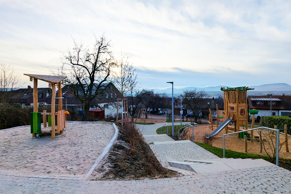 Der Spielplatz in der Sudetenstraße in Eislingen wurde im Januar 2026 fertiggestellt und setzt bewusst auf hochwertige Naturholz-Spielgeräte. Durch die Verwendung natürlicher Materialien entsteht eine warme, einladende Atmosphäre, die sich harmonisch in das Wohnumfeld einfügt. Die natürliche Optik des Holzes unterstützt nicht nur die gestalterische Integration in die Umgebung, sondern ermöglicht Kindern auch unmittelbare taktile Erfahrungen. So wird der Spielraum zu einem authentischen Erlebnisort mit hoher Aufenthaltsqualität und nachhaltigem Charakter.